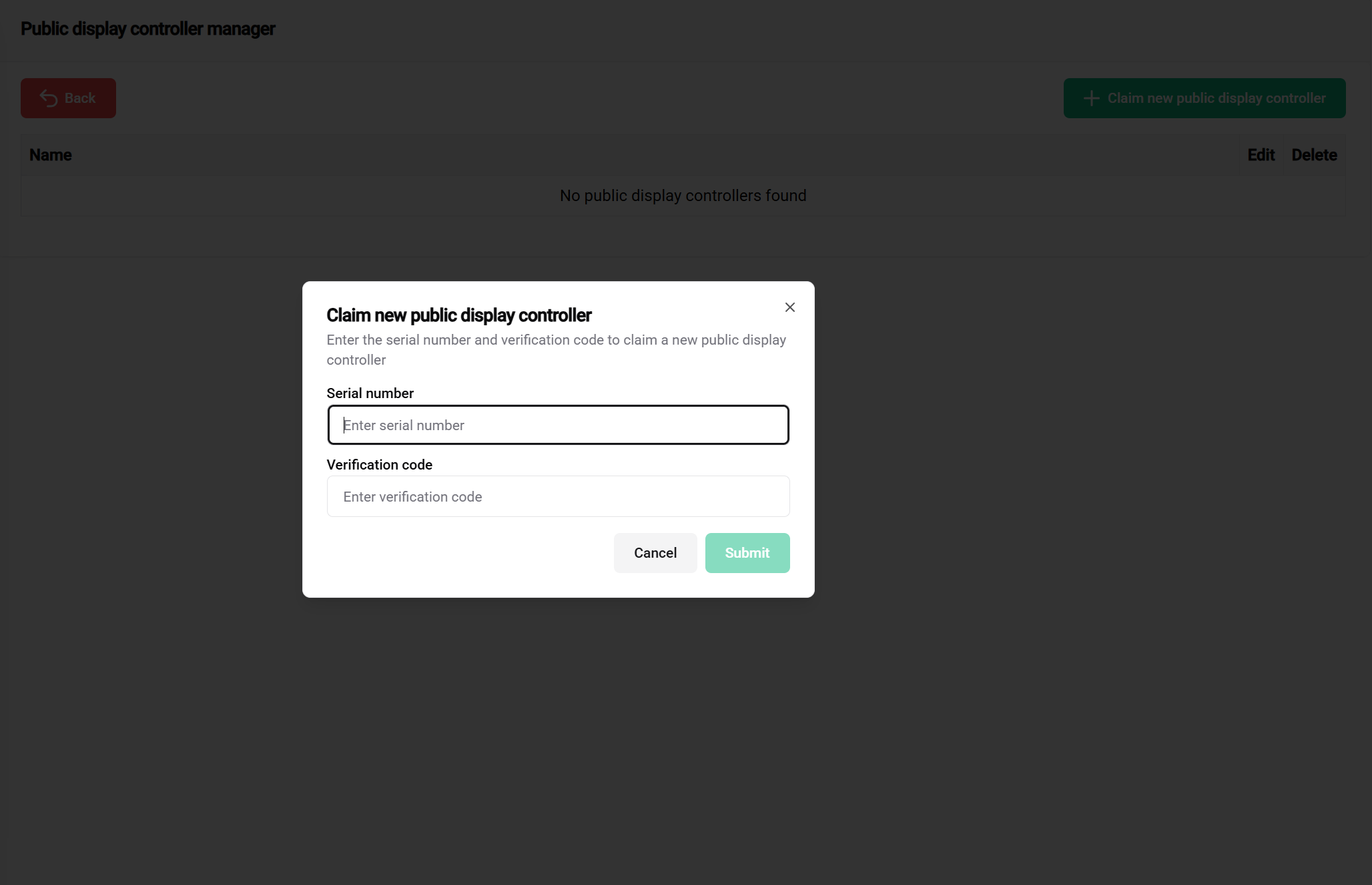 Complete guide to managing, claiming, and configuring public display controllers in your portal.