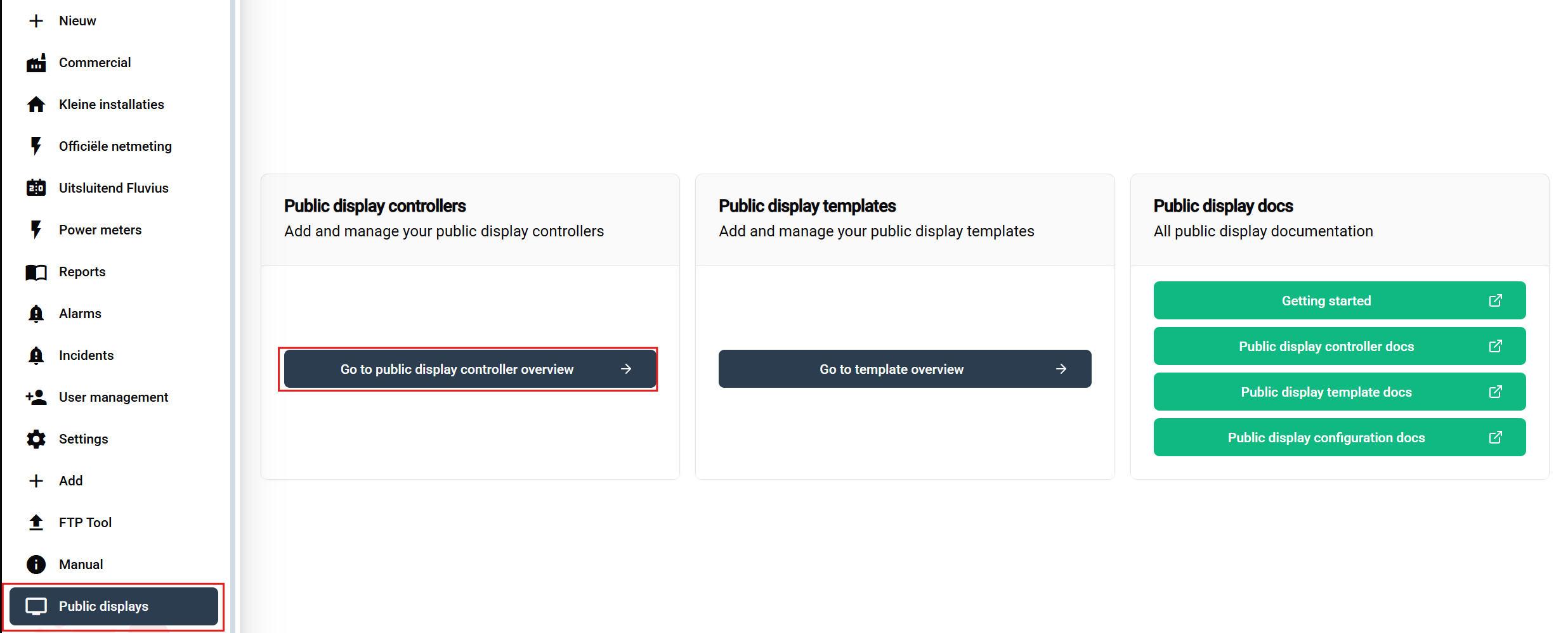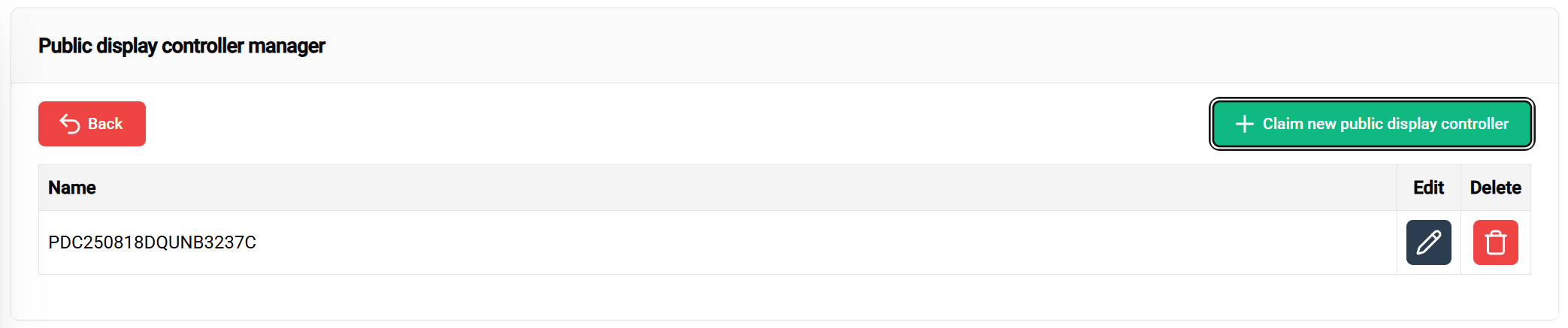 - ➕ Claim Public display Controller - Green button (top-right) for adding new devices