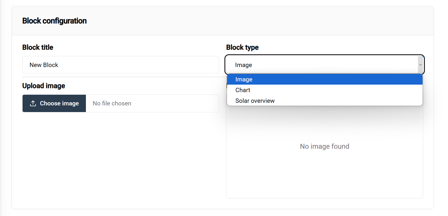 - Block type dropdown is the primary configuration option