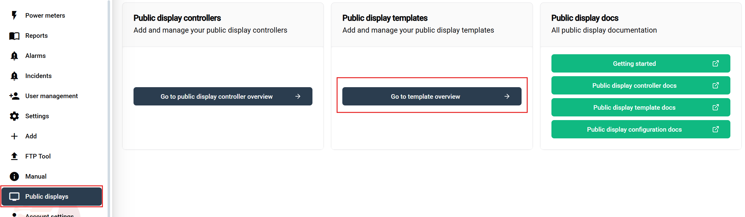 - Navigate to 'Public displays' in the main sidebar
